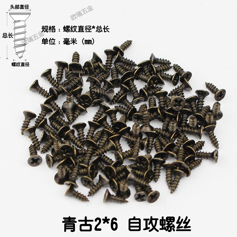 Green ancient bronze color self-tapping M2M2 5M3 small hinge special antique countersunk head flat cross small screw screw iron