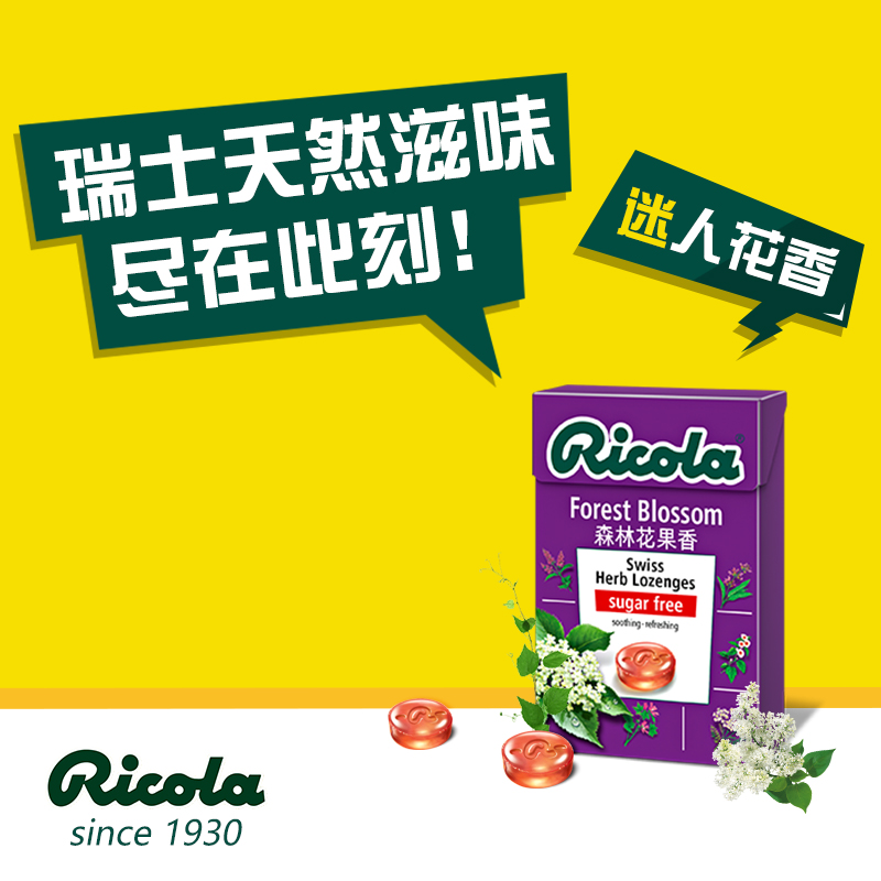 Swiss imports Ricola liguchi Taste Lemon Black Vinegar Chestnut Forest Flowers Fruit Vanilla without sugar Runthroats Mint Sugar