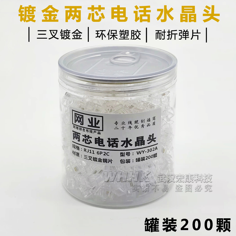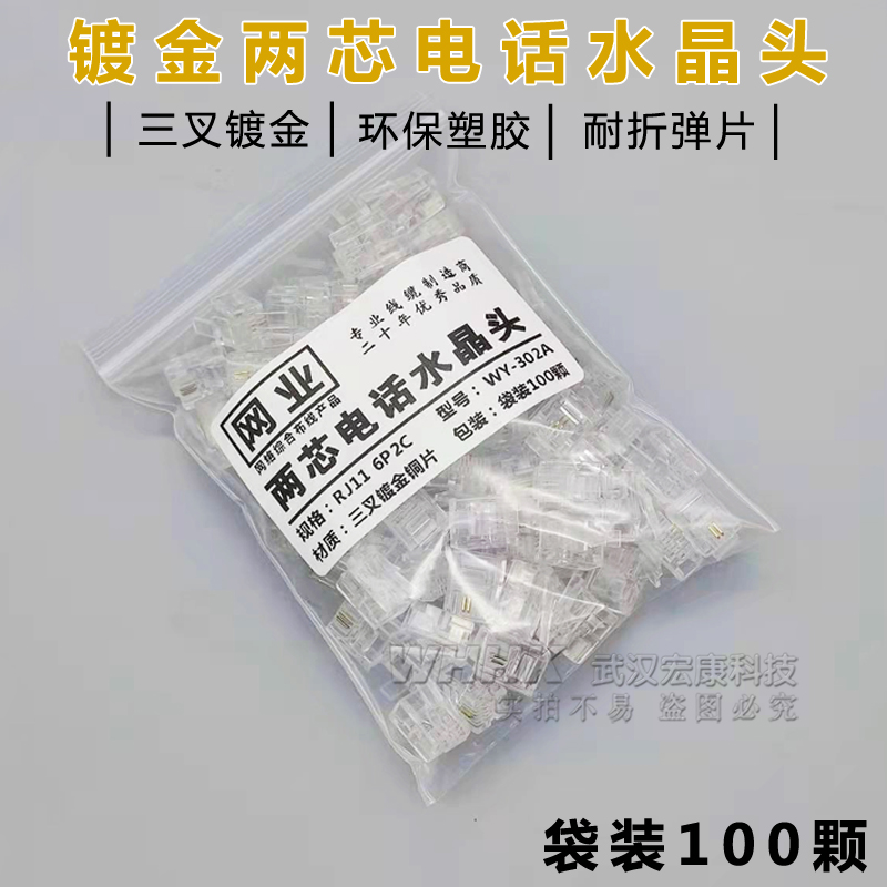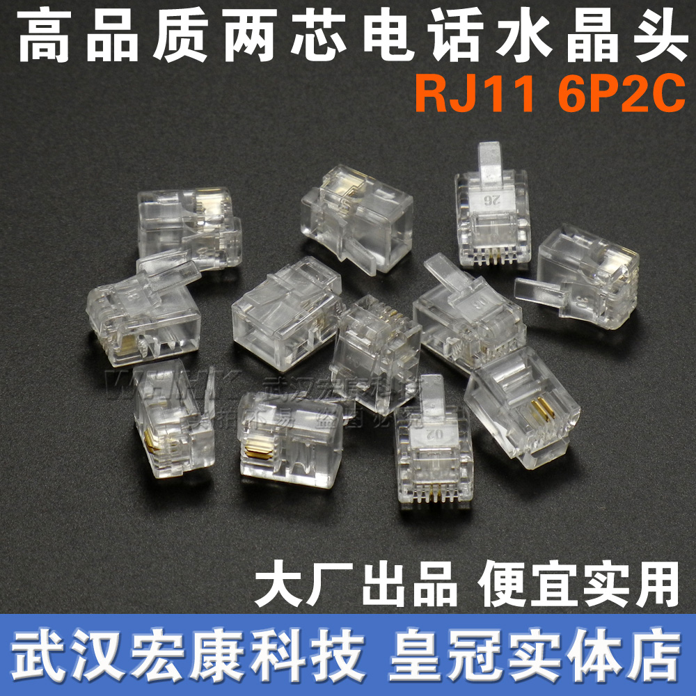 Wuhan Real Body Shop Gilded Engineering Grade 2 Core Phone Head RJ11 6P2C Two Core Phone Line Crystal Head 100