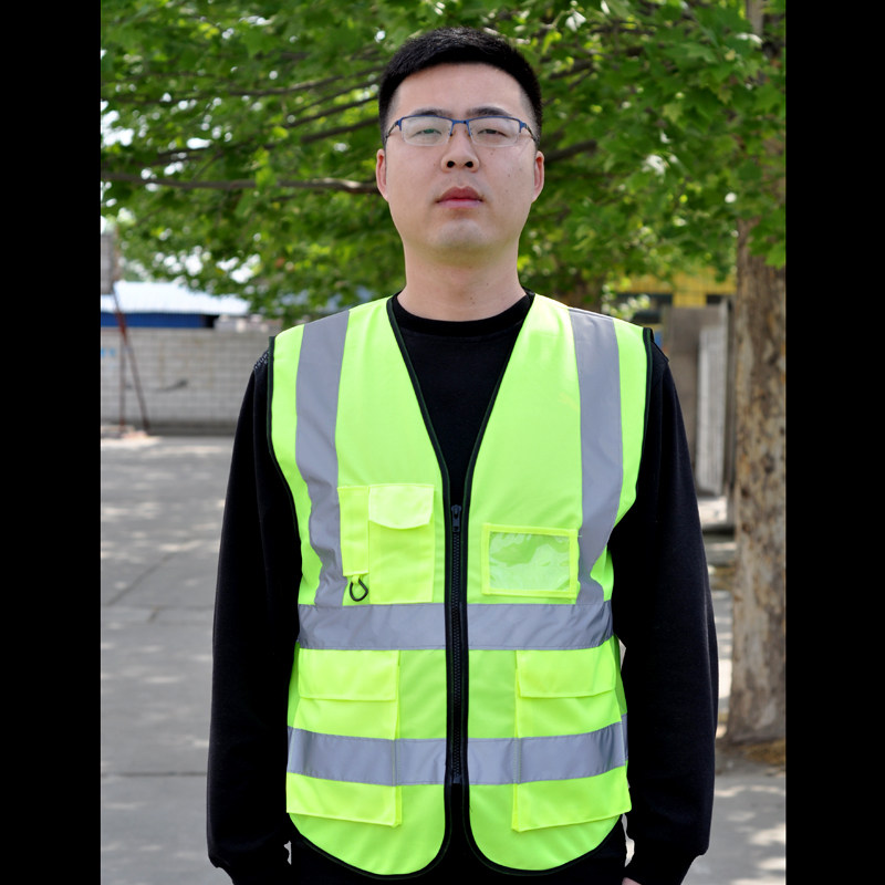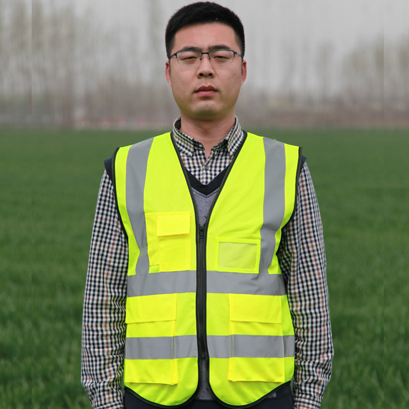 Reflective waistcoat safety vest fluorescent green road traffic building construction sanitation multipocket horse beetle print