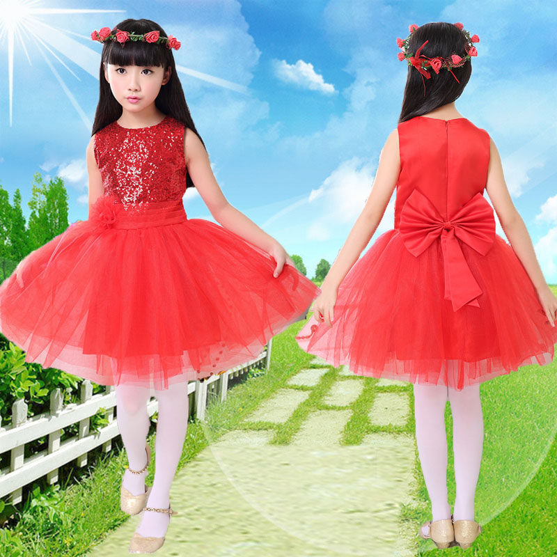 61 Large Red Sequin Princess Dress Fluffy Dress Performance Chorus Costume Presenter Piano Florist Dresses