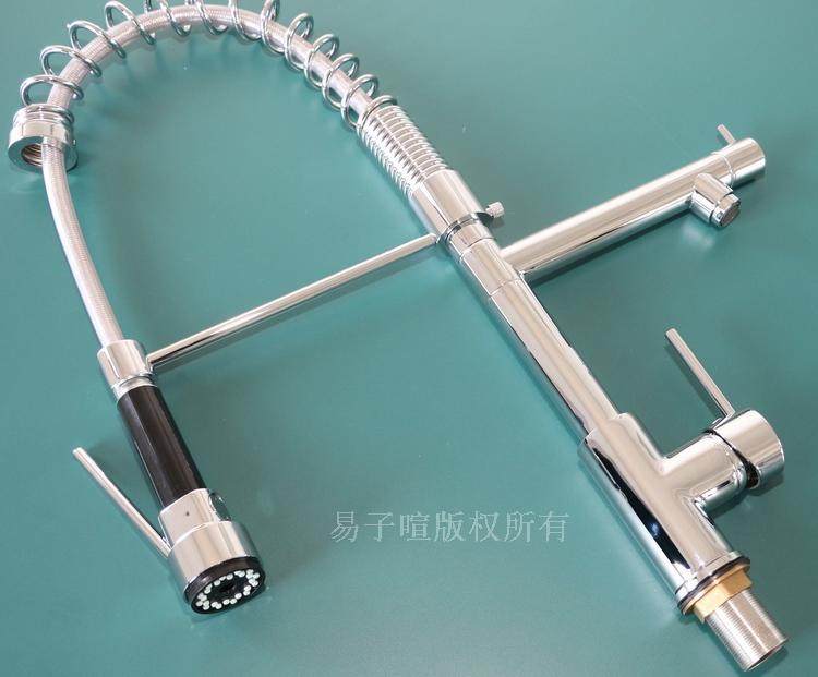 Derui - copper spring faucet double pumping pull kitchen with high pressure nozzle 360 degree rotating ceramic
