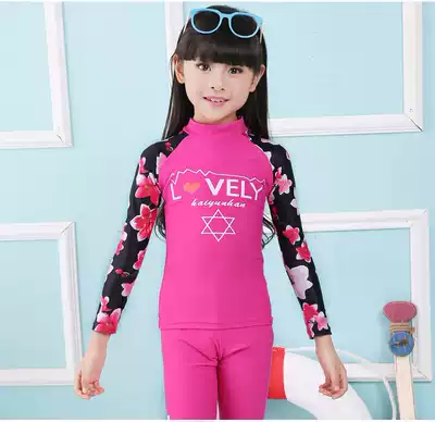 Girls ' Swimsuit Middle School Children's student Korean two-piece Conservative long-sleeved trousers Sunscreen girls and children's swimsuit set