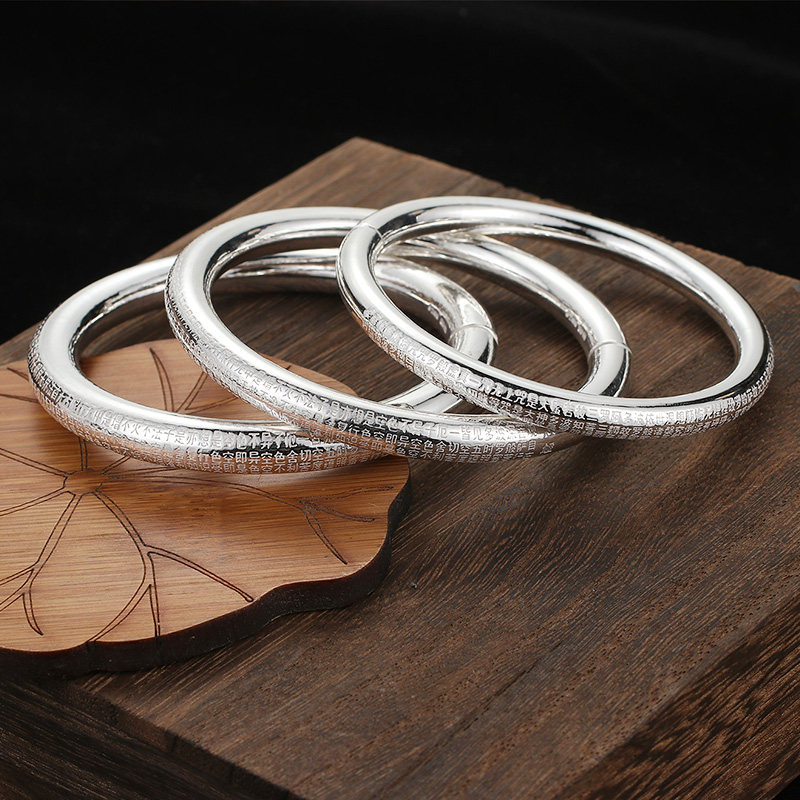 Jiuxi Yinlou S999 foot silver male solid sterling silver bracelet female heart through opening couple silver bracelet silver jewelry customization