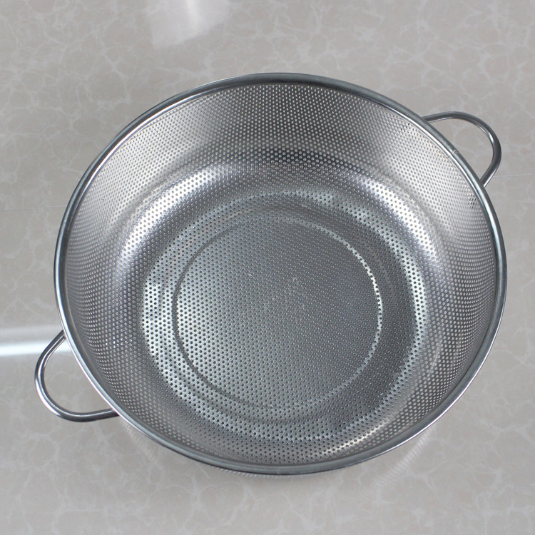 Stainless steel large basin drainage basin thick leaky basin tao rice basin round fruit and vegetable basket washing vegetable basket filter basin washing rice basin