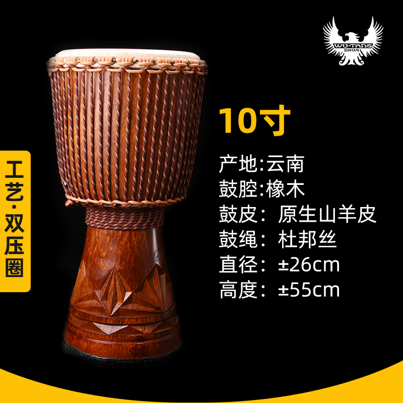 Wutang large 10-inch oak professional-level training African drum primary and secondary school students adult beginners Lijiang playing tambourine