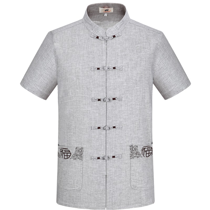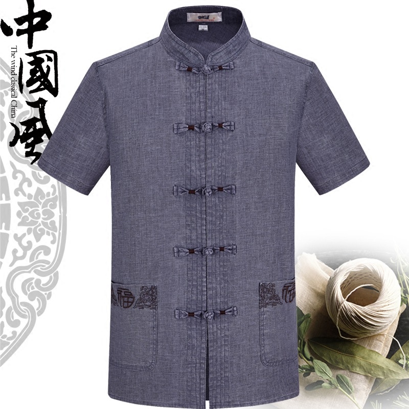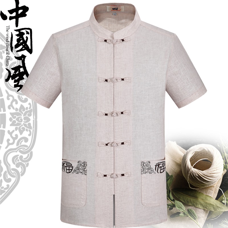 Summer middle aged short sleeves Tang suit Chinese linen men's shirts plus hypertrophy size Dad clothes casual cotton linen blouse