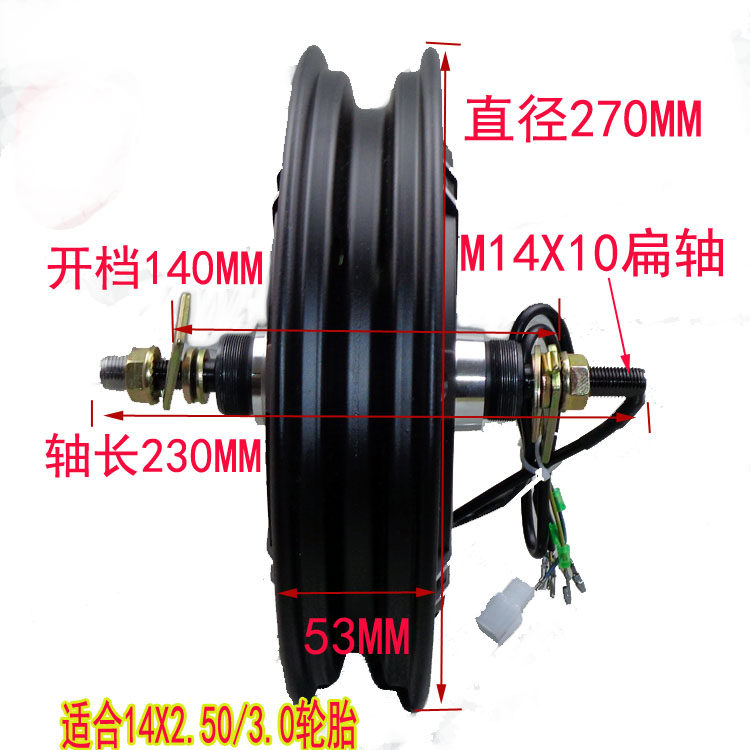 National standard electric car 14 inch left rising brake 48V60V350W500W800W1000W brushless 120 degree motor