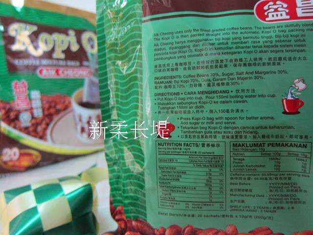 (3 packs) Malaysia AIK CHEONG Kopi O Yichang coffee bag black coffee 200g