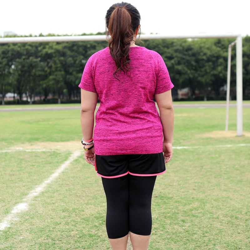 Large size fitness suit female fat mm200 catties sports fake two-piece cropped pants suit yoga running quick-drying suit