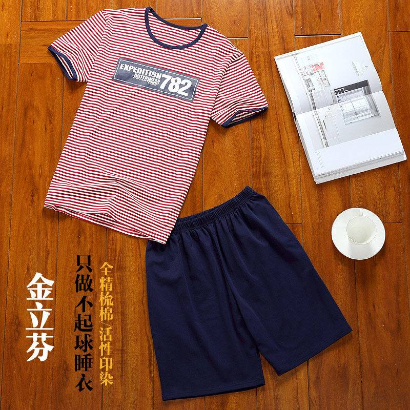 Wear pajamas men's summer cotton short sleeve thin plus size men's stripes summer home suit
