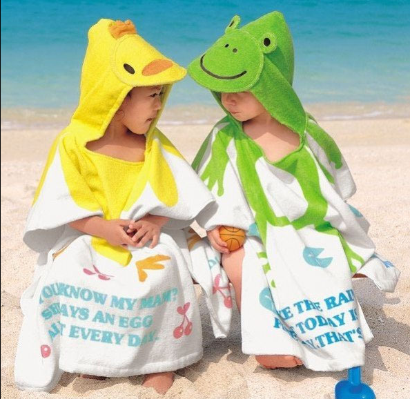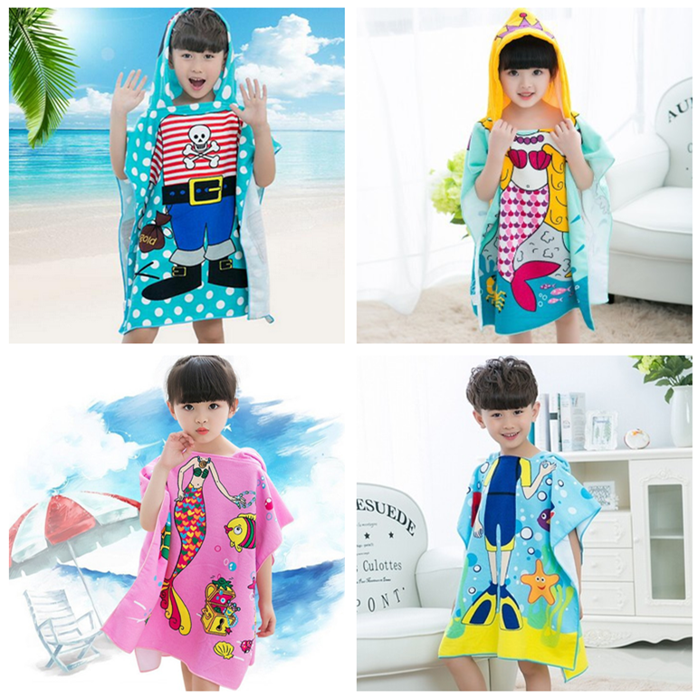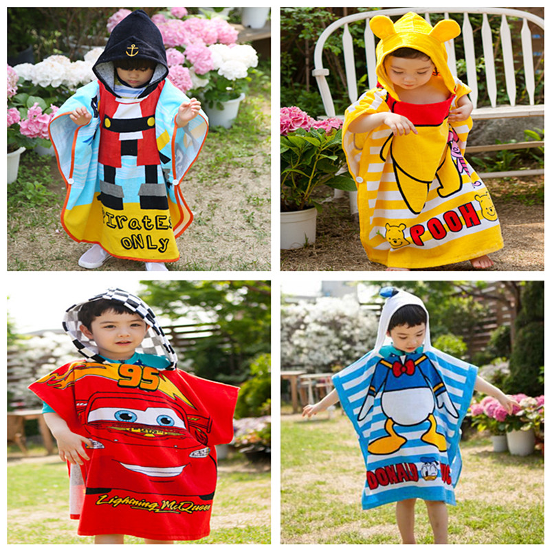 Children's bathrobe boys cotton towel absorbent bath towel swimming cartoon can wear girls hooded cape beach towel