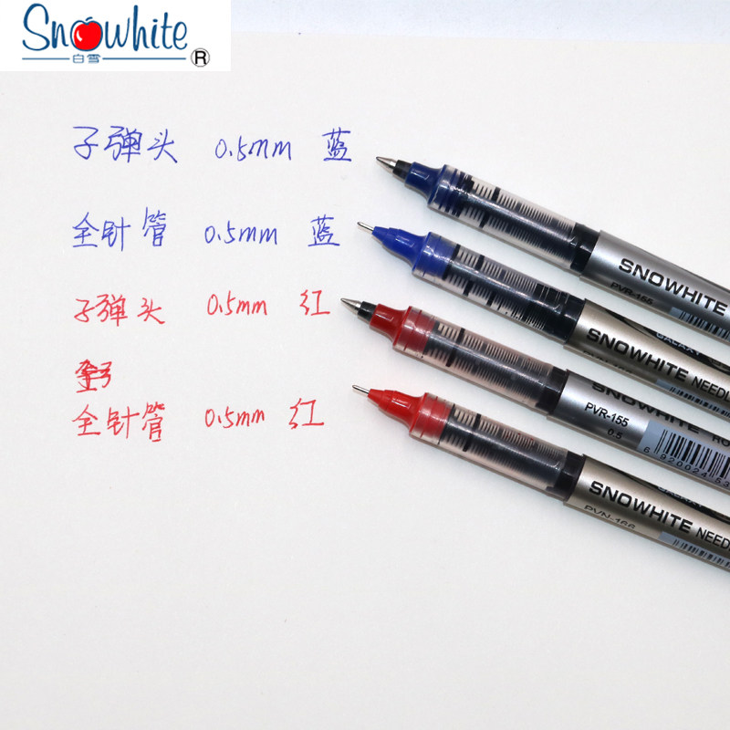 Snow straight liquid water-based ballpoint pen Students with neutral pen black 0 5 practice pen hard pen needle tube type water-based brush simple middle school students red pen Carbon quick-drying student signature pen test special