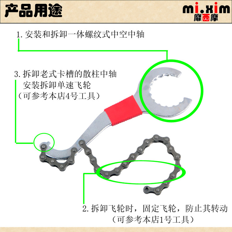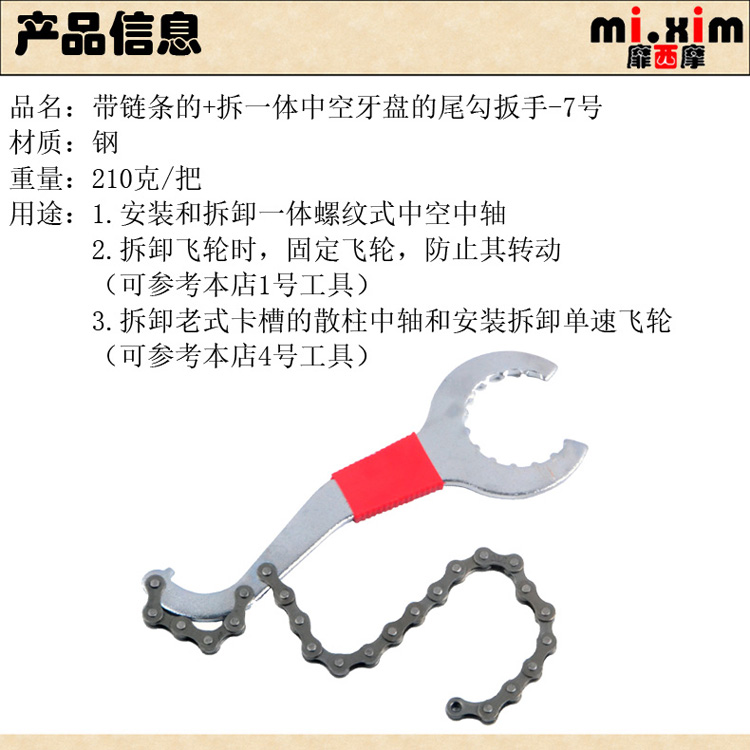 One-piece central shaft wrench Removal flywheel fixed wrench Tail hook wrench Three-in-one tool Bicycle repair tool