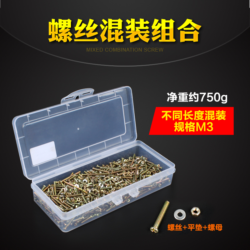 M3 Semi-circular head screw Cross screw Galvanized hex nut Gasket nut Mixed plum small screw set