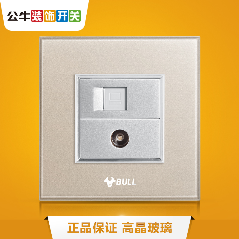Bull TV Computer Socket Switch Network Route Cable TV Internet Panel Champagne Gold CCTV G22