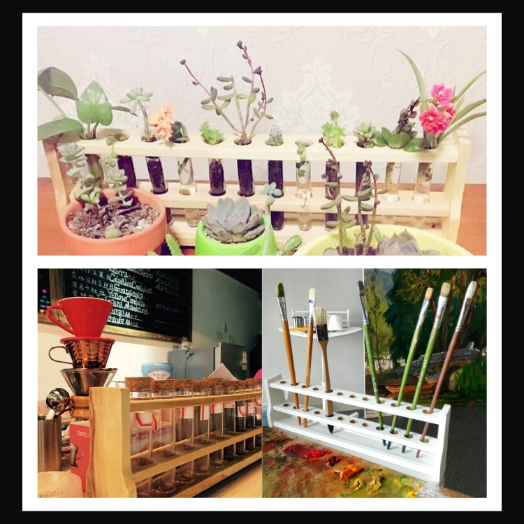 Wooden colorimetric tube rack 6 12-hole hydroponic flower device glass test tube rack sample display double-layer wooden frame complete specifications