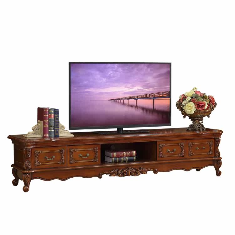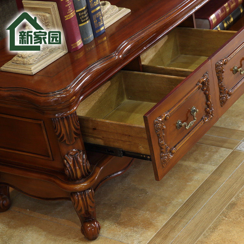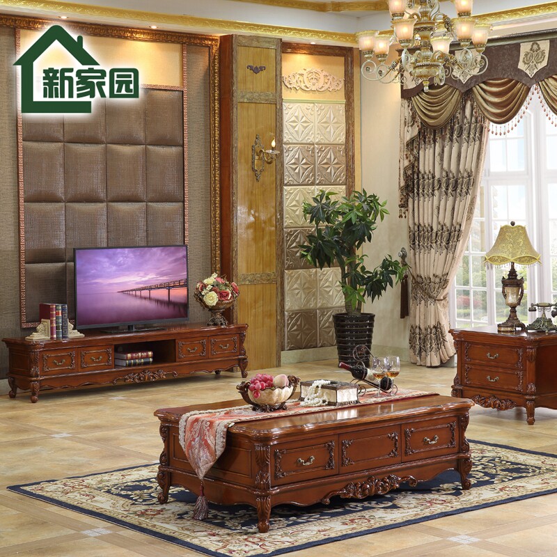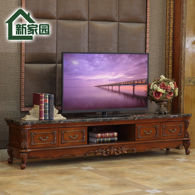 European-style solid wood marble living room TV cabinet American-style dark minimalist rectangular floor cabinet Coffee table combination kit