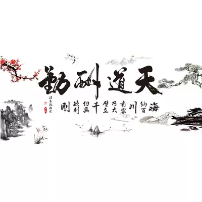 Tiantian rewards hard work (full 50 minus 3) Tranquility Zhiyuan (buy more discount) landscape (Chinese style decorative stickers) willing to be (living room tea room decorations) Hai Nai Baichuan (ancient style calligraphy and painting)