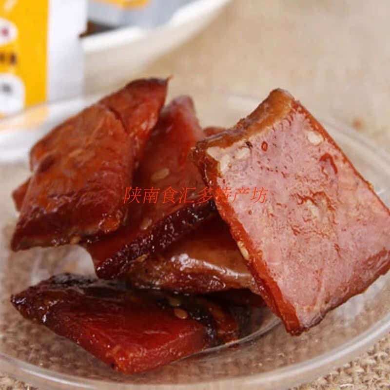 Two bags of ready-to-eat snacks of Baihe specialty Baixiang dried bacon and selenium-rich pork jerky in Ankang, Southern Shaanxi