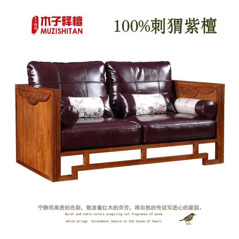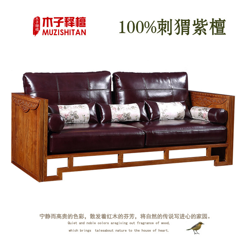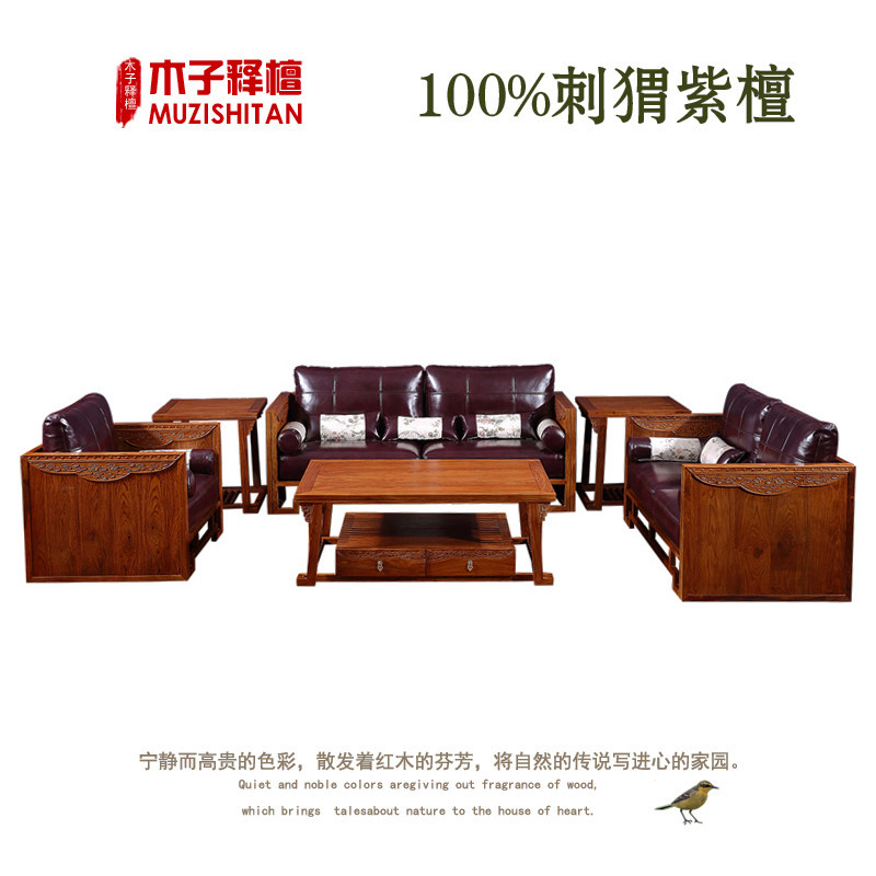 Myanmar flower pear wood sofa combined redwood furniture new Chinese living room package hedgehopple-sandal