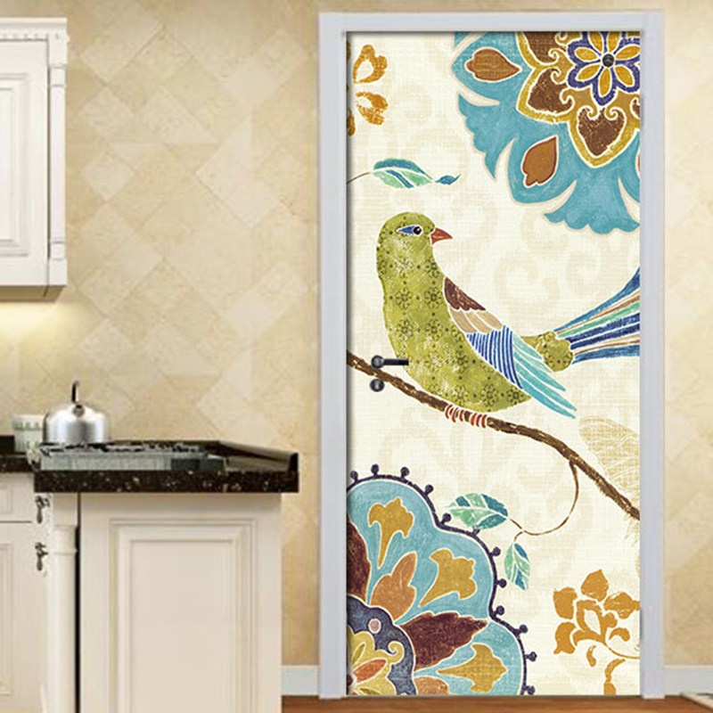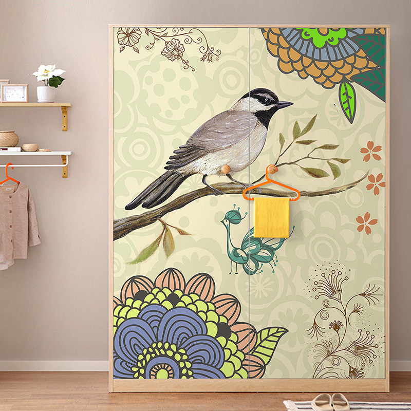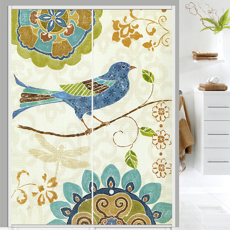 Customized wardrobe stickers refurbished sliding door glass film custom wooden door and window decals color sliding door stickers flowers
