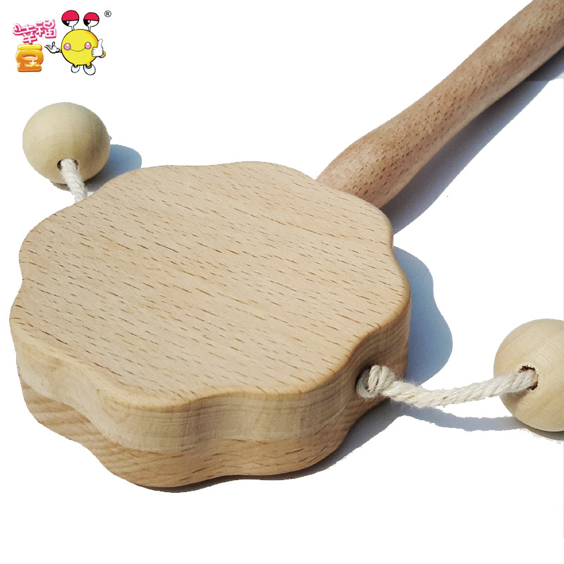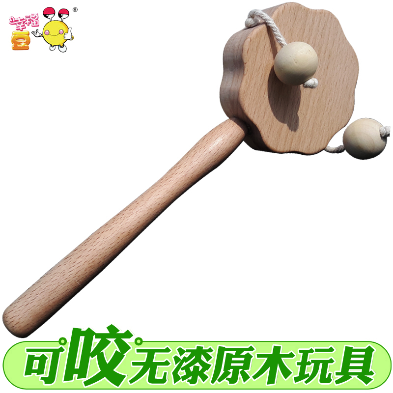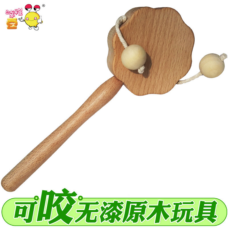 0-1 year old baby rattle Newborn hand drum Children's wooden Huolang drum Beech bite log toy