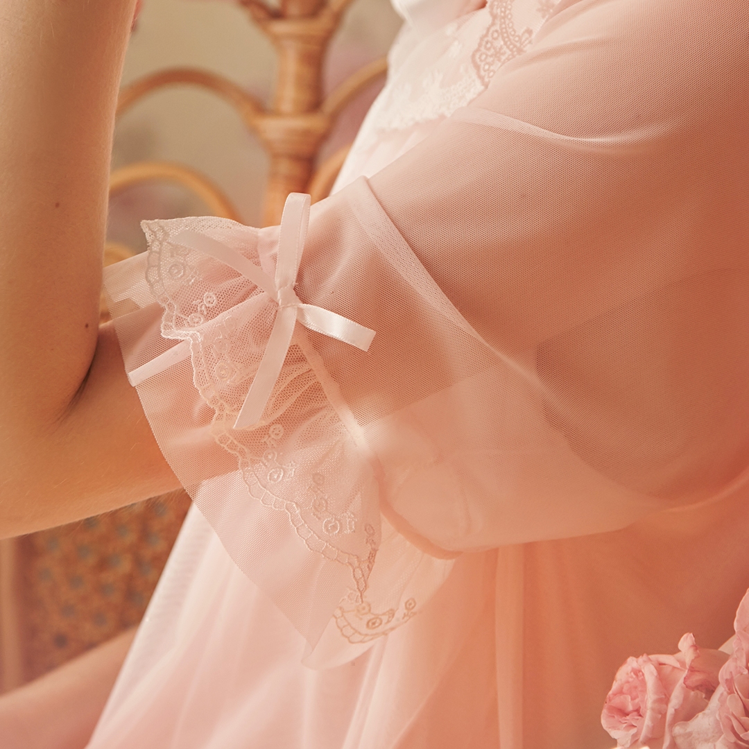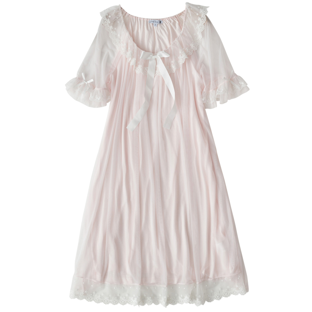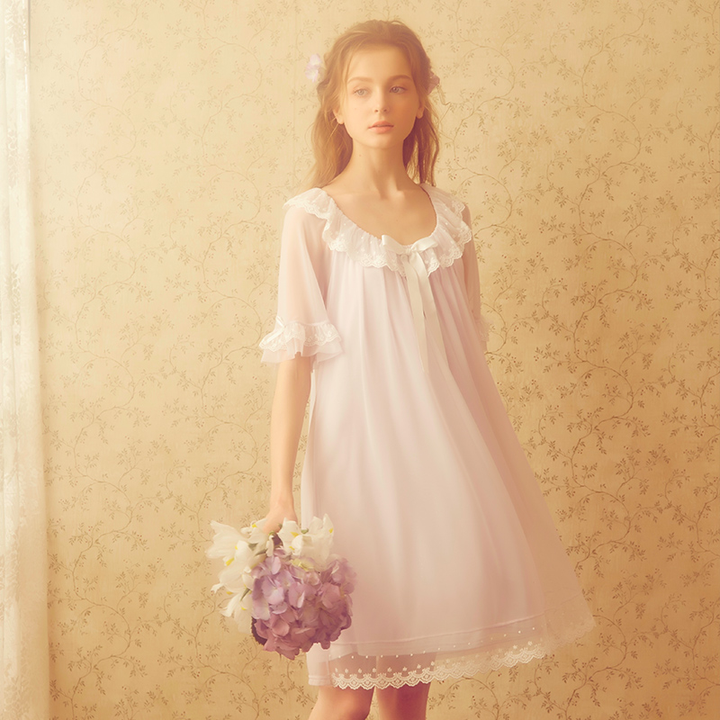 RoseTree palace nightdress female summer lace sexy pajamas cute retro princess ice silk short-sleeved home clothes