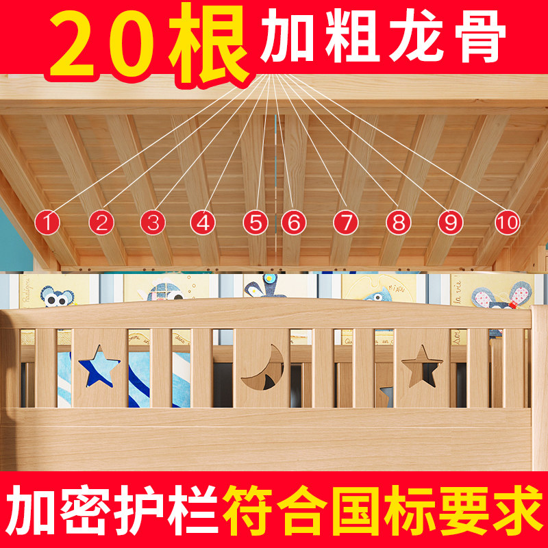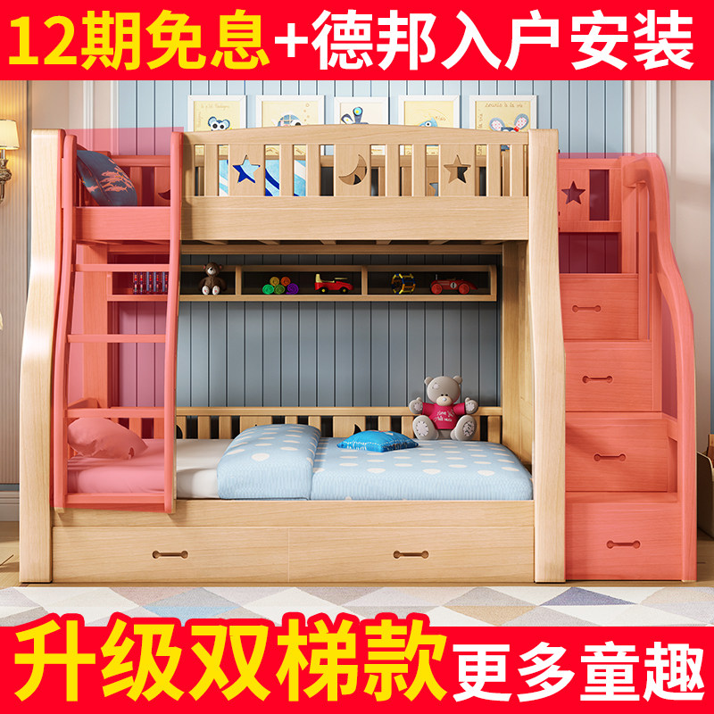 Upper and lower bed Full solid wood high and low bed Multi-functional mother and child bed Second child bed Upper and lower bunk wooden bed Double bed two layers