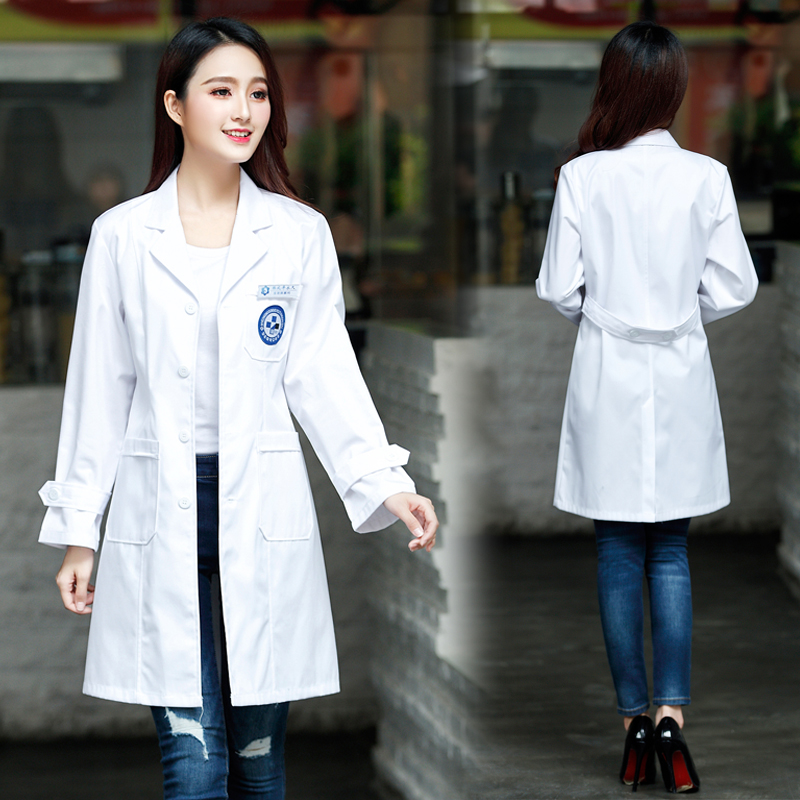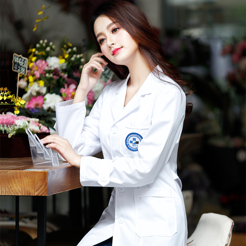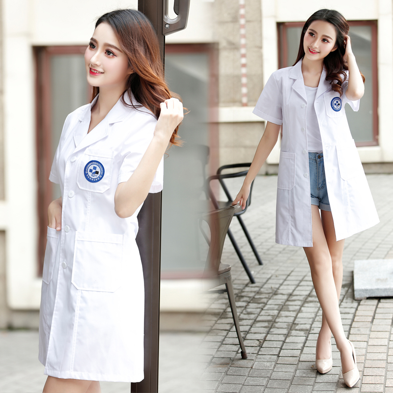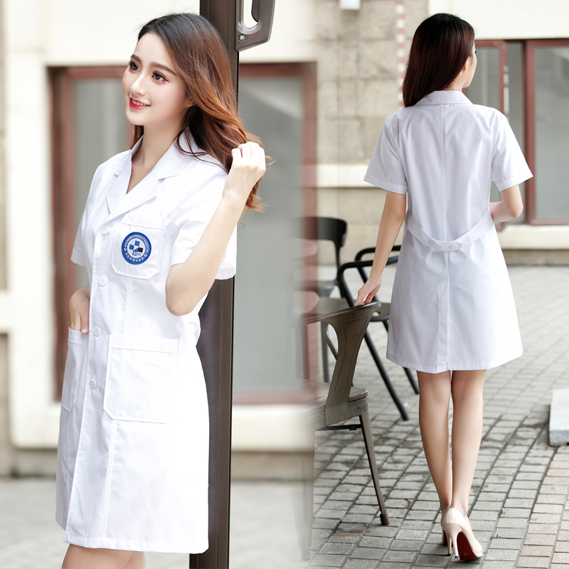 Semi permanent Korean version white coat of white coat with long sleeve female nurse serving short sleeve beauty salon tattoo embroidered dress doctor clothes doctor clothes workwear