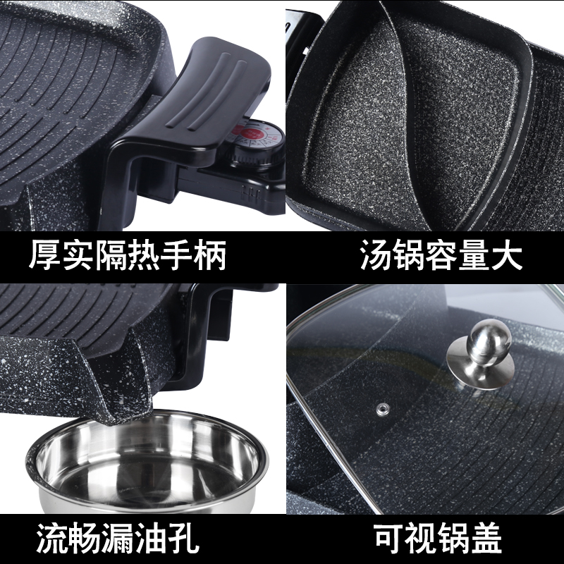 Han Style Home Barbecue Meat Hot Pot Dual-use Pot medical stone Boiling Baked Integrated Pan Smokeless Electric Baking Pan without dipping into the pan