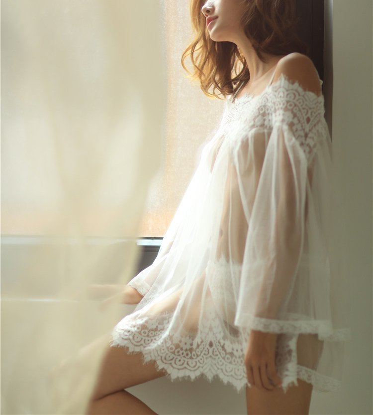 High-end sexy transparent ultra-thin erotics underwear Qing pure lace eyelash uniform suit extremely seductive short skirt pyjamas