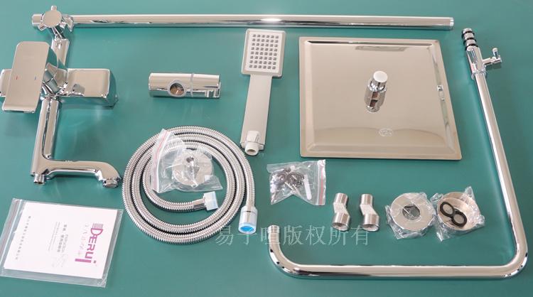 DERUI full copper multifunction bathing shower head suit hot and cold lifting 10-inch ultra-thin 304 stainless steel squared shower