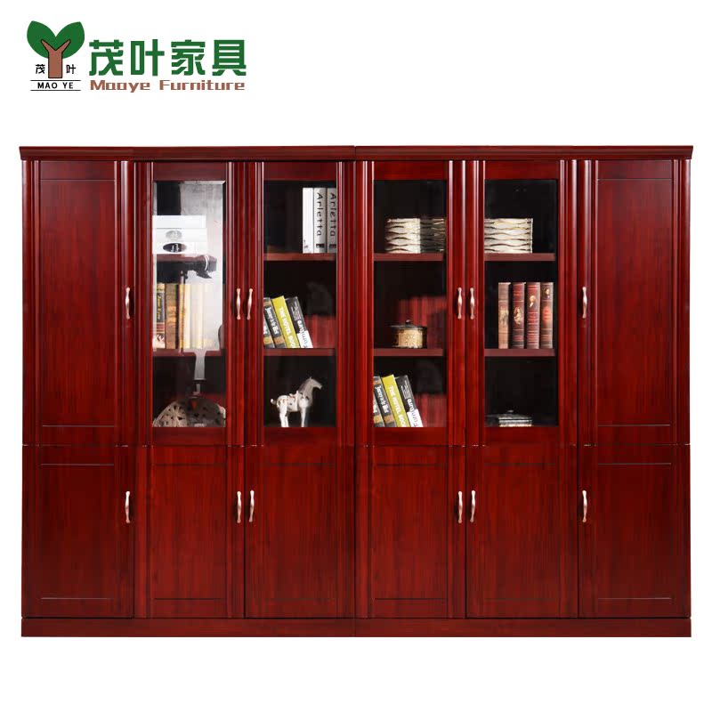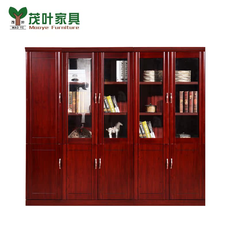 Maoye office furniture red walnut paint solid wood veneer landing file cabinet information display case bookcase 207-1