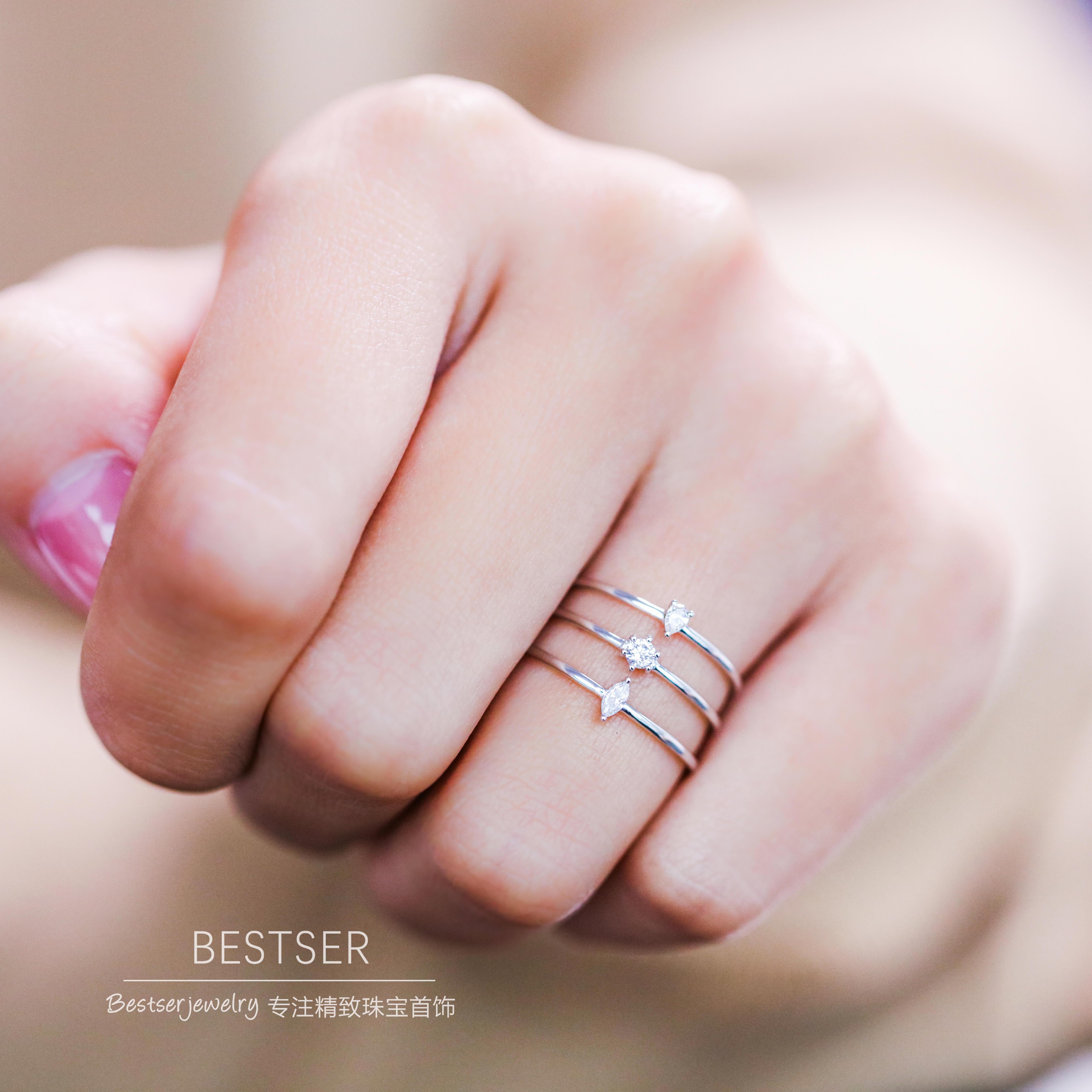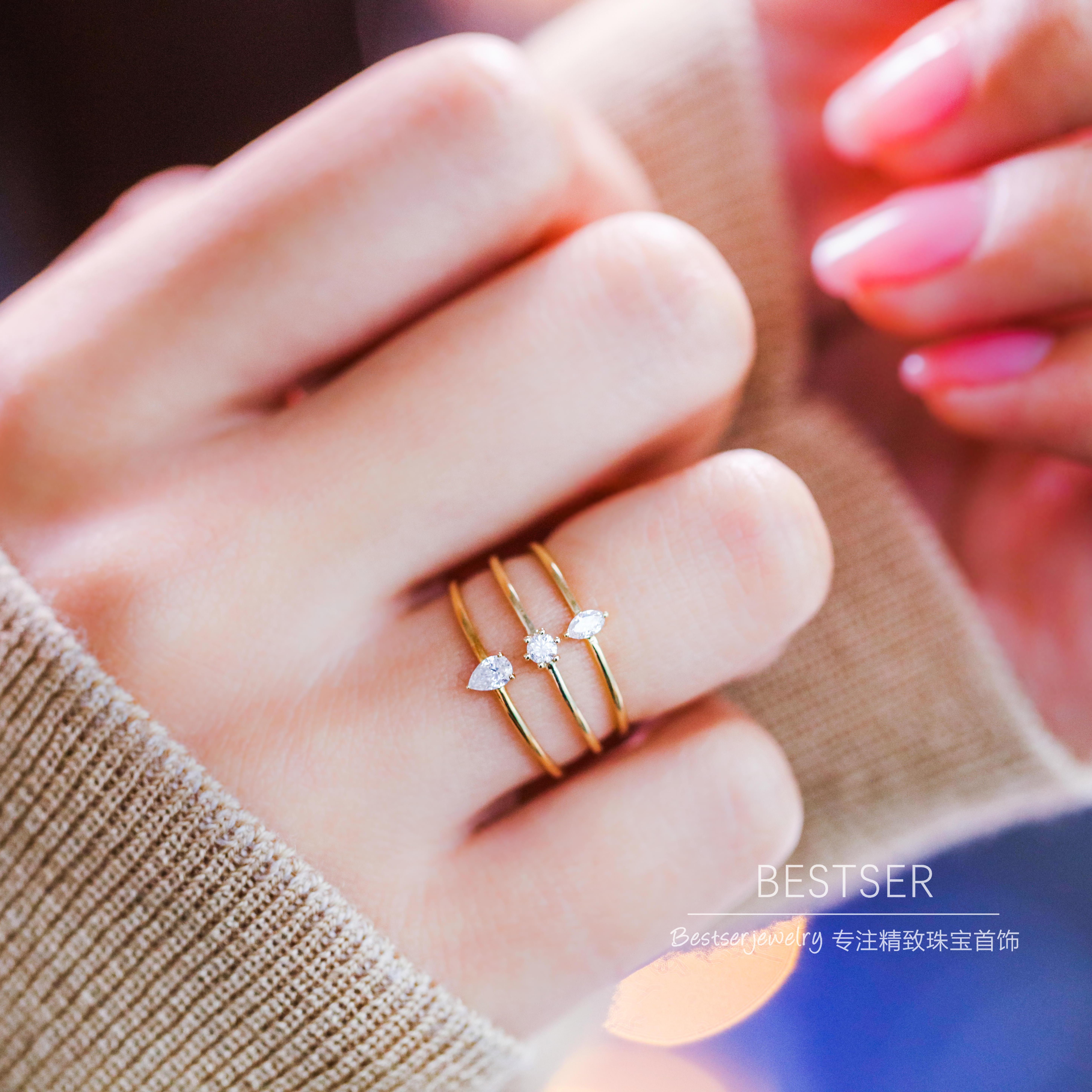 Bestser Bestser (little cute) 18K gold single drill ring horse eye drop diamond bare drill minima drilling ring female