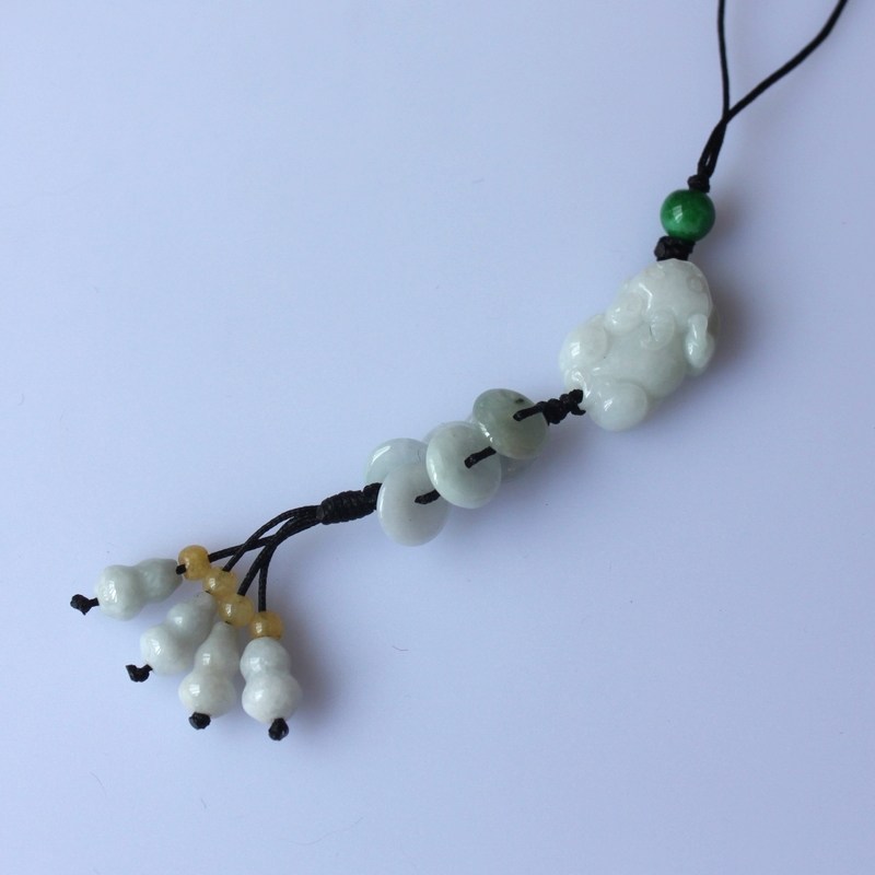 Natural jade jade Pixiu gourd safety buckle mobile phone lanyard car key chain buckle U disk bag pendant