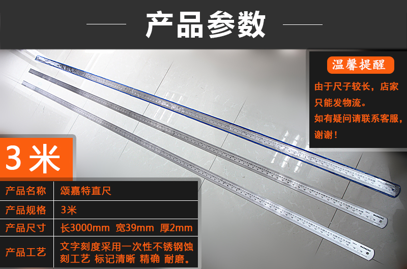 Extra long 3 meters straight ruler stainless steel ruler scale ruler carpentry ruler thickened ruler steel ruler