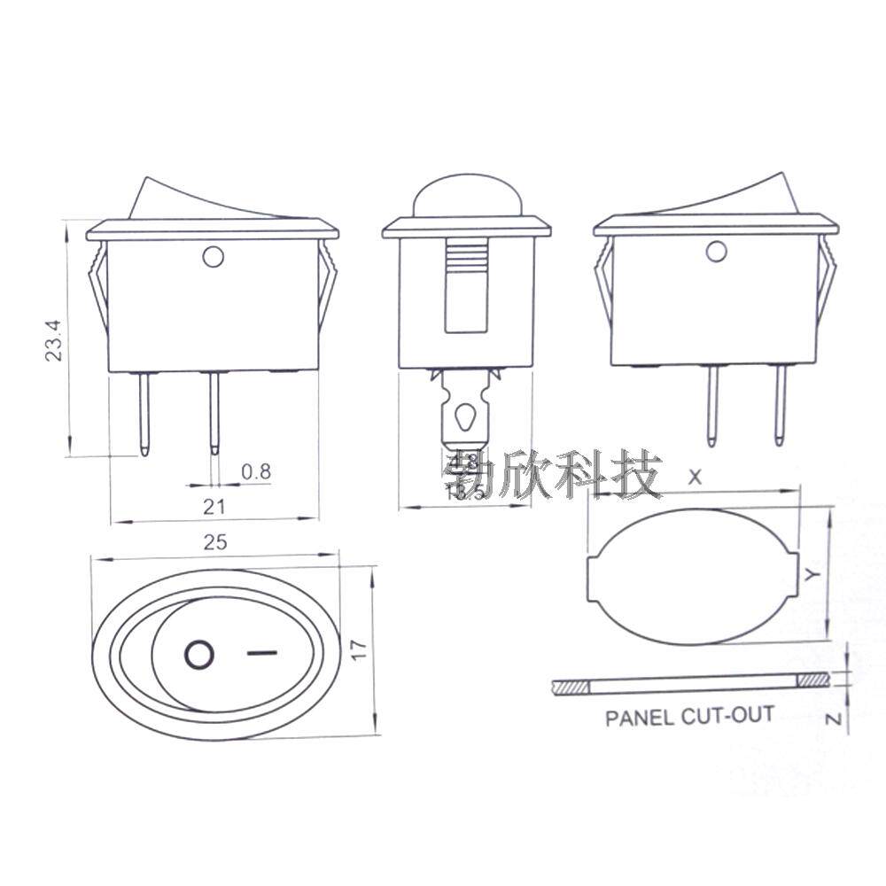 Rocker switch 2 gear 2-foot oval rocker switch power switch 17 * 25 6A250V RS601E