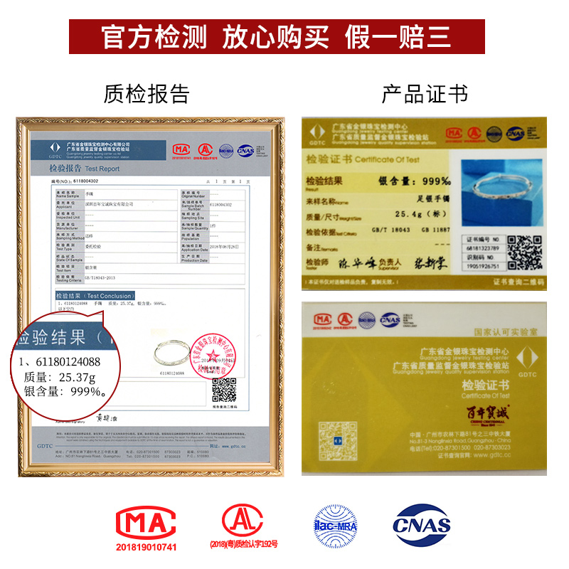 Hundred years Bao Chengzhong Sky silver bracelet girl young 999 foot silver bracelet red explosive jewelry sent to girlfriend