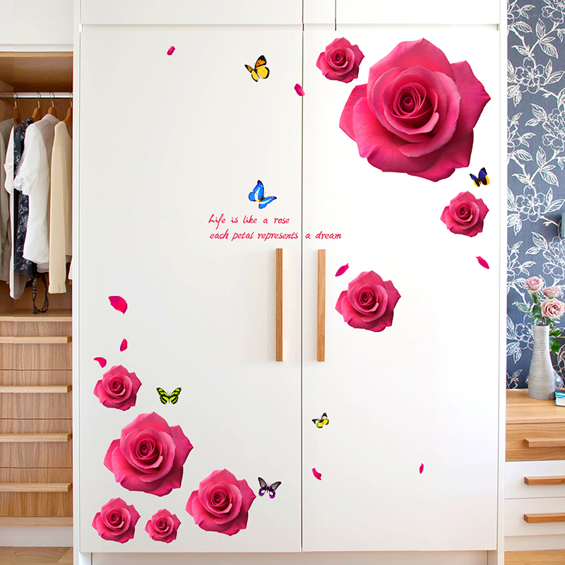 Bedroom 3d Solid wallpaper Self-adhesive wall Sticker Rose Flowers TV Background Wall Decorative Wall Stickler