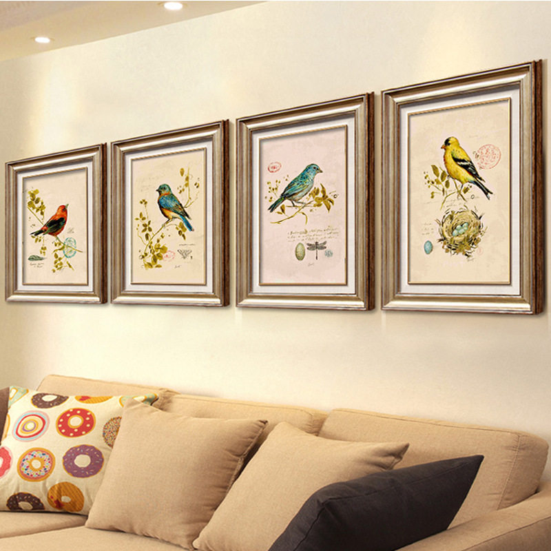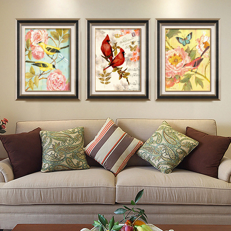 Living room sofa Background wall American Countryside Decoration Painting Modern Brief Stairway Genguan Hanging Painting Dining Hall Fresco Flowers Birds