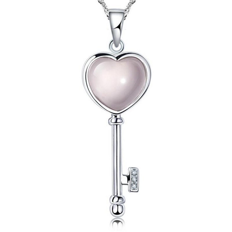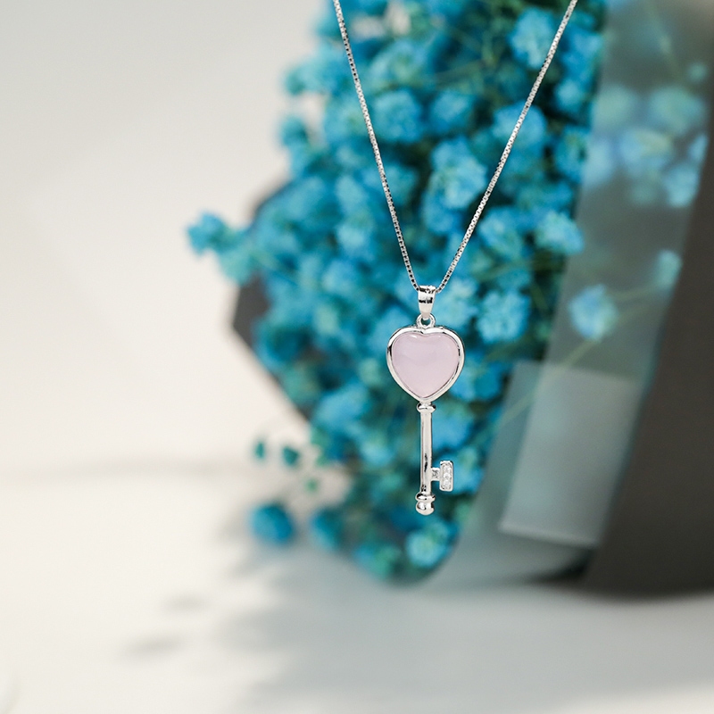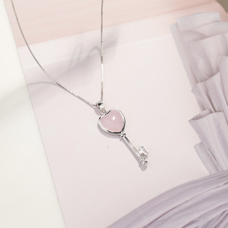 925 Silver Necklace Lady Lock Bone Chain Loving Key Powder Crystal Pendant Minimalist Neck Chain Hibiscus Precious Silver Ornament-Taobao