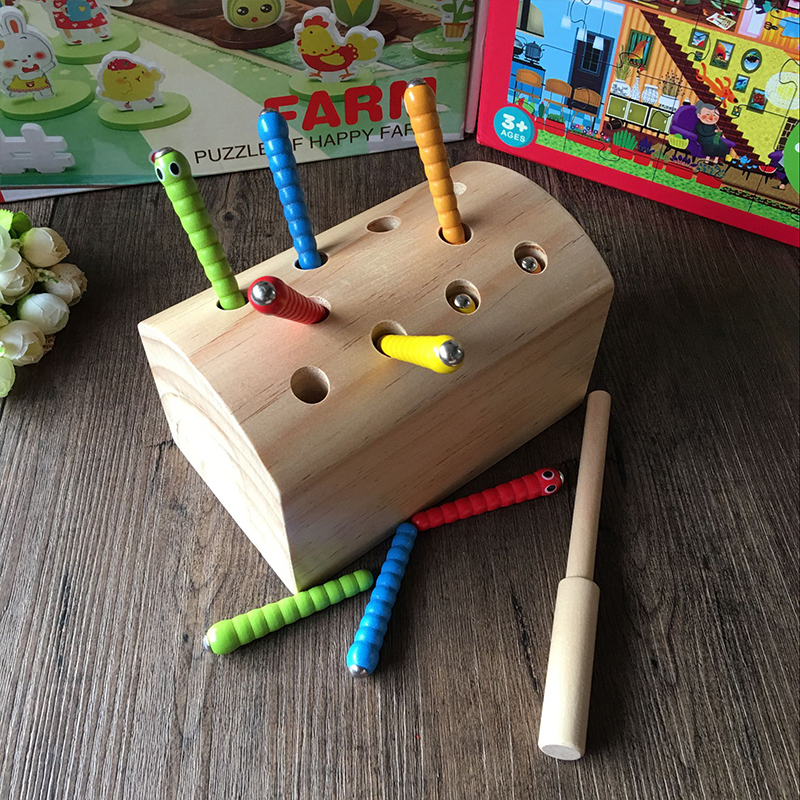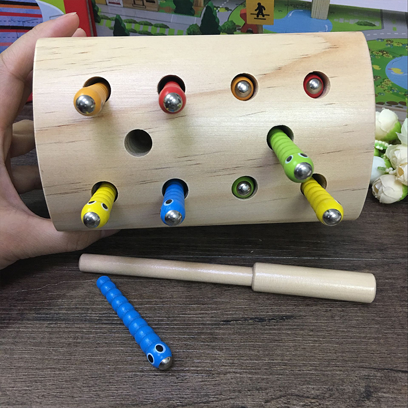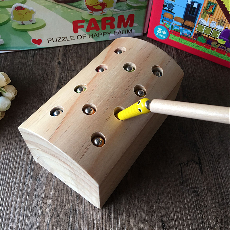 Baby magnetic bug catcher game toy Wooden early education puzzle force Parent-child interaction 1234-year-old building block toy
