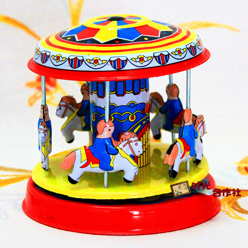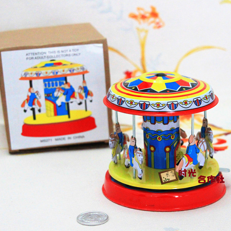 Post 80 Child nostalgia Classic retro toy Tin clockwork Clockwork Carousel Collection Pendulum bar Decoration
