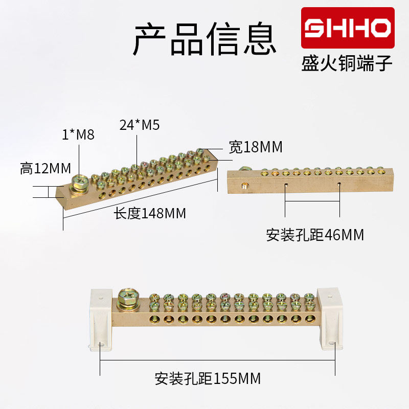 Large current 1 in 24 Out of branch wiring terminals busbars pick up the zero grounding copper bar One-in-one-out of the multi-wire junction terminals