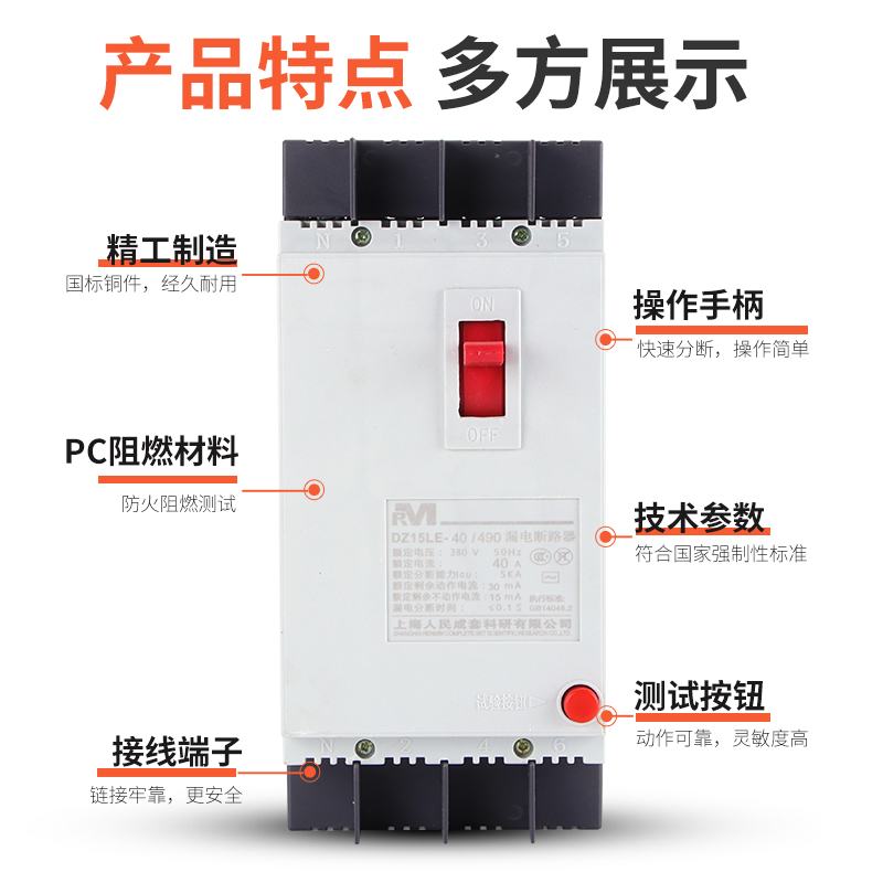 RM plastic case circuit breaker DZ15LE-100 390 three-phase leakage protector 100A 80A 63A three-wire