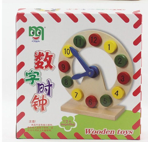 Wooden color digital large clock round kindergarten early teaching tools for children's toys