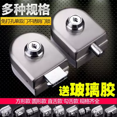 Stainless steel frameless glass single and double door locks Round square sliding door floor latches Central office push-pull punch-free