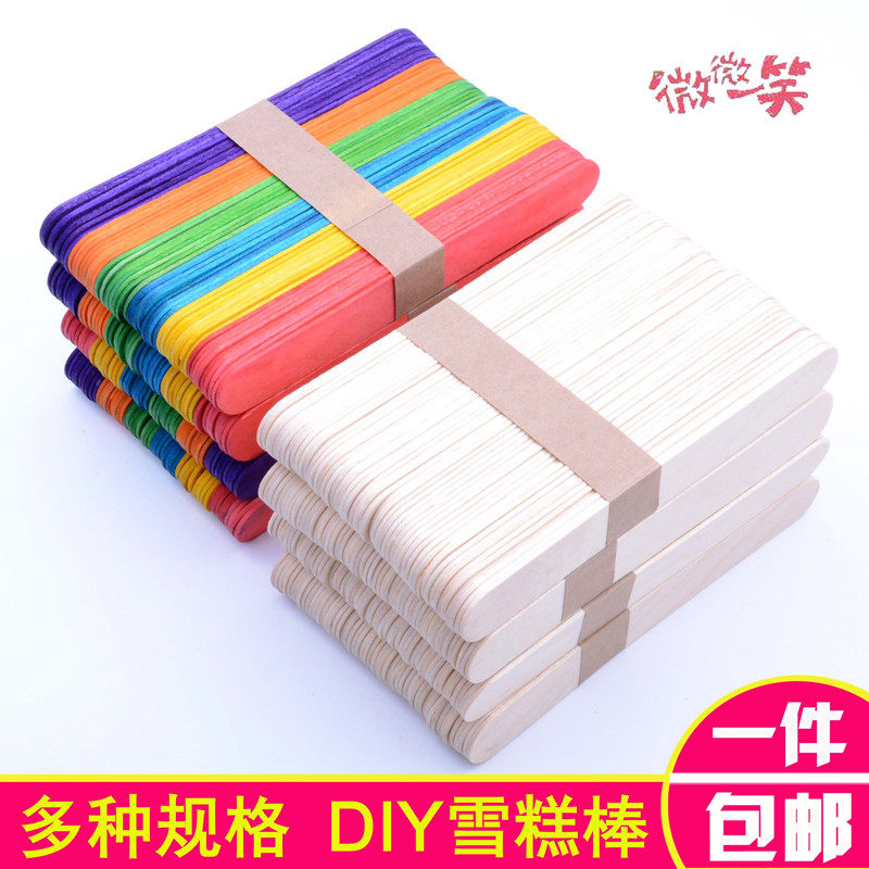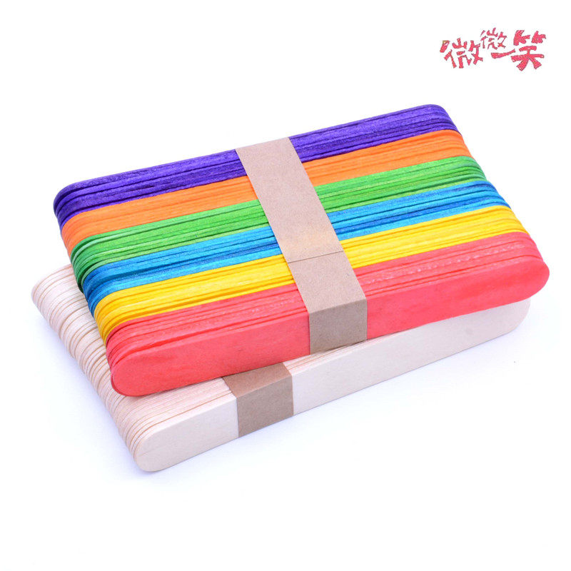 Color Wood Stick DIY Handmade Model Wood Pieces Pure Wood Sticks Ice Popsicle Sticks Ice Sticks Wooden Bar Nursery Hot Pins