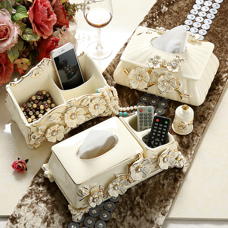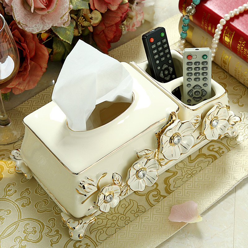 Eurostyle ceramic multifunction paper towel box Creative European-style living room tea table remote control containing box napkin cramps